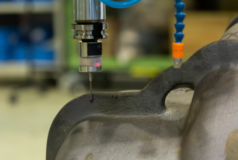 The contact measurement method was also a decisive factor. Laser-based measuring devices were also considered, but a contact-type device was chosen to avoid potential interference from external factors such as the surface roughness and metallic sheen of castings, as well as brightness within the factory.